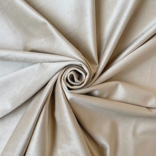 Светло-бежевый бархат — одна из самых востребованных тканей для создания светлых, элегантных интерьерных решений. Ткань имеет короткий ворс, мягкую фактуру и отлично драпируется, что делает её идеальной для пошива штор, декоративного текстиля и интерьерного оформления.